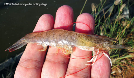 Hình 02 - Tôm bị nhiễm EMS sau khi lột xác